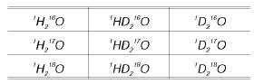 Таким образом, возможно существование молекул воды, в которых содержатся любые из пяти водородных изотопов в любом сочетании.